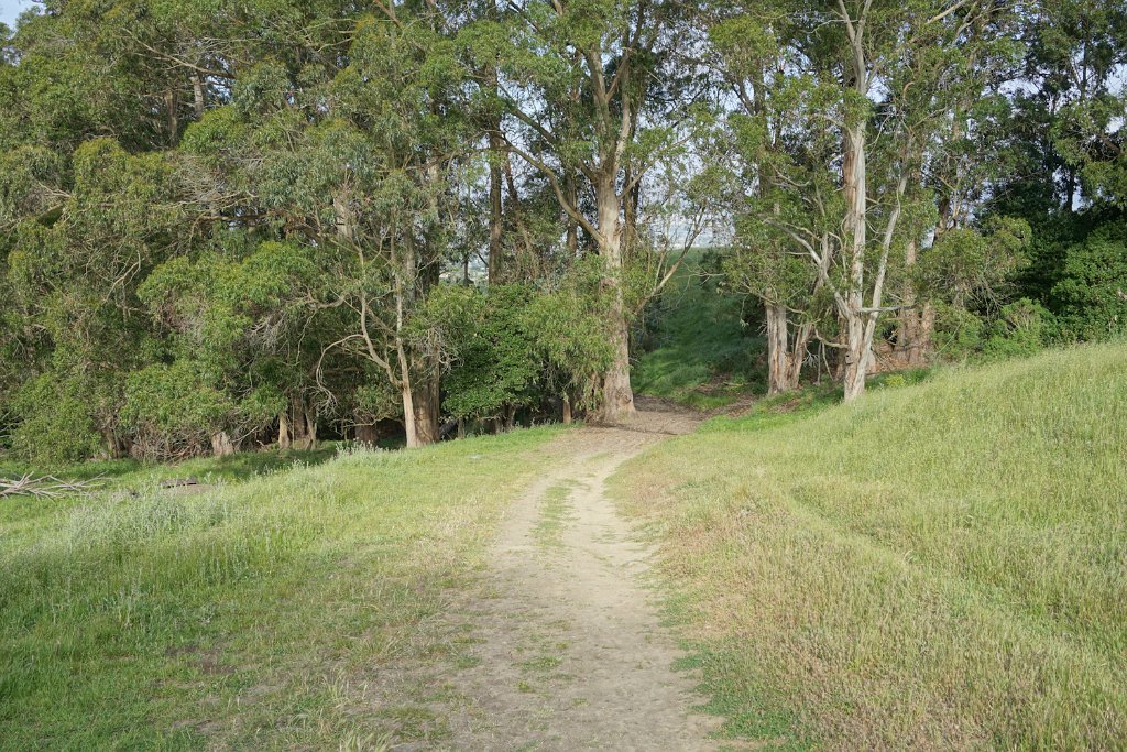 Belgum Trail goes through a small cluster of eucalyptus trees