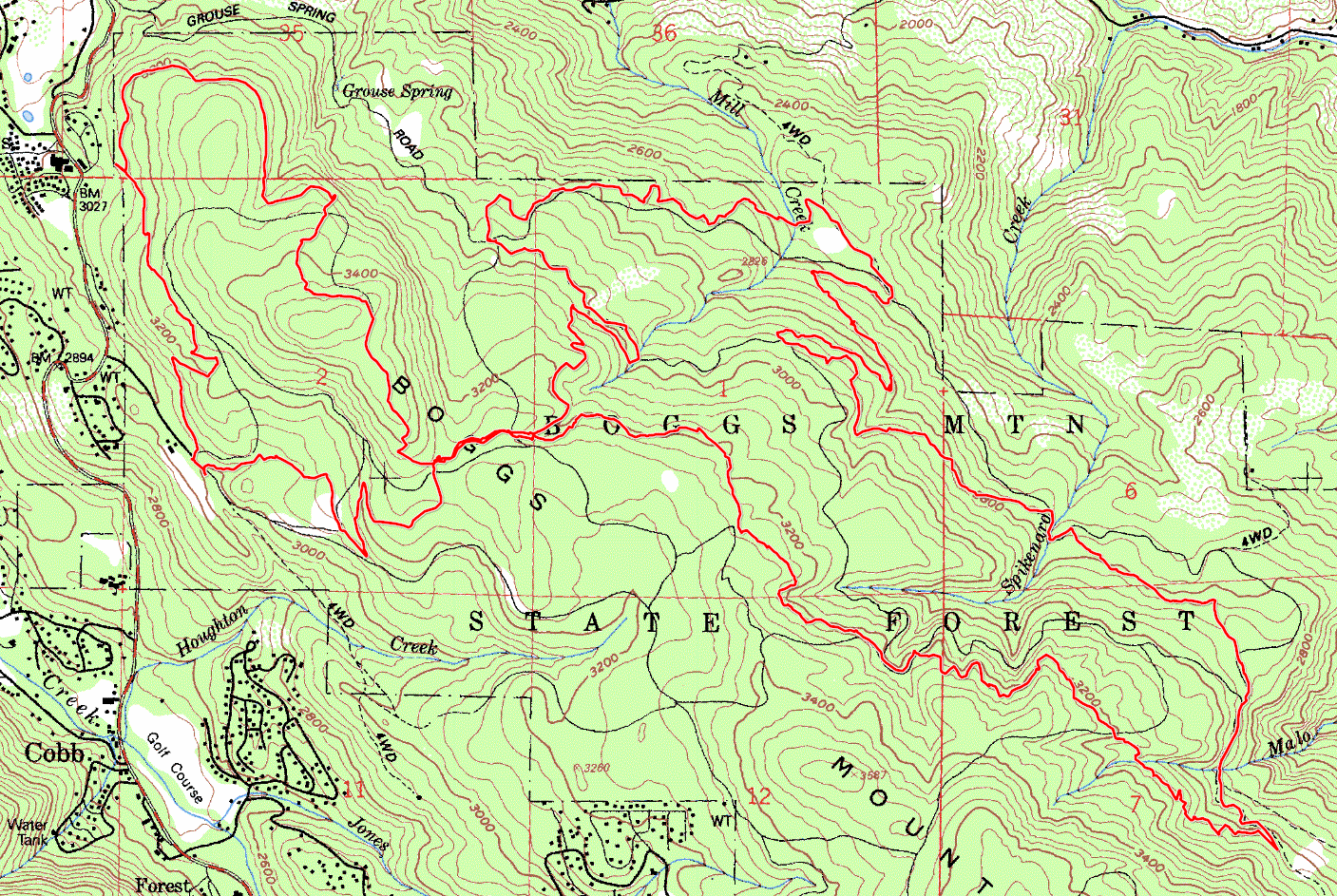 Boggs Mountain 86% SINGLETRACK14% FIRE ROAD ![]() Unfortunately, the "Valley Fire" of September 2015 has burned through the entire area of the Boggs Mountain Demonstration Forest (and then some), making it impossible to do this ride as I describe it here or to see it as I show it in my photos. What I've read is that the trail network has started to open back up partially around July 2018. You will also find a viewer comment from August 2020 at the bottom of this page reporting that some of the original singletrack at Boggs, including some trails that are in this ride descripton, are now also back in use. This doesn't mean that you can now replicate this whole ride again, or not even that you can do an alternate version that could be similarly satisfactory. But, I will leave this page here anyway, showing how things used to be here, at least until enough of the rest of the trail network reopens to make it worthwhile again to schlep all the way up here for a bike ride. I'm not sure what it is about "demonstration forests", but Boggs Demonstration State Forest is one of only three demonstration forests that I know of within driving range of the Bay Area, and just like its Soquel and Jackson counterparts, it's chock full of first-class, advanced, singletrack trails that seem to be tailor-made for mountain bikers. There is enough singletrack mileage at Boggs to occupy any rider for the better part of a day. Meanwhile, there are no extreme elevation changes or extended climbs to struggle through in order to enjoy these trails, although the terrain is almost never flat and will still give you a serious workout. I read that the trails at Boggs were initially built by the employees of the Forestry Service for their own riding enjoyment. I don't know about the applicability of this to the current trail system here, but it's immediately noticeable that many trails here are named after people, such as Karen's Trail, Berry's Trail, Gail's Trail, etc. So, in some cases, as you ride on a trail here that you like, you'll have an idea as to the name of the person to whom you presumably owe the pleasure. Other than a few limited segments, the trails on this ride are not terribly technical, which seems to be the rule when it comes to the characteristics of the trails at Boggs in general. Most are pretty smooth forest singletrack of relatively short length that connect segments of the tight mesh of dirt "forest roads" to each other. Some trails at Boggs presented an odd riding challenge to me that I hadn't encountered before. Perhaps I should call it a "navigation challenge" instead, because I'm talking about the occasional difficulty in following the trail due to a thick and even layer of dried pine needles covering the ground. I've seen this mostly in a few trails in the northwestern half of the park, and even there it's not throughout the entire length of any trail, of course. It might be a seasonal condition (this ride was in December) and it was really bad only in a few limited stretches. With the large number of trails at Boggs that are all tightly interconnected, one can't point to one or two routes as the obviously preferable ones. The possibilities are extensive. What I was attempting with the route selection of this particular ride is to fit as many of the most popular trails at Boggs as I can into a single ride of manageable length, and to do them in the preferable direction for each trail. Of course, no single ride can achieve that perfectly and neither does this one, especially since I had to take a shortcut to a quicker completion near the end due to running out of time. But, this is as close as I can get to that ideal on my first ride attempt at Boggs, based on the pre-ride prep/research work I was able to do. One word of warning about the GPS track of this ride first: My GPS acted up a little while doing this ride and parts of the track data are not as accurate as the tracks of the other rides on this site. It still reflects the general routing of the ride fairly well, but don't try to make pinpoint decisions about turns or junctions based solely on the GPS track, at least on the stretch of the ride through Big Springs Trail and John's Trail. Thankfully, trails at Boggs Mountain are well signed. The signs may be small and sometimes easy to miss (most notably at the turn from Forest Road 100 onto Big Springs Trail in my particular case) but I don't remember any junction without one. The ride consists of two sub-loops and starts with a climb on Mac's Trail that's a good warm-up without becoming over the top in difficulty. You continue onto Hoberg's Loop without much challenge but also without much excitement. Rocky patches on the trail multiply a little bit as you start working uphill more strenuously when you connect to the brief segment of Boggs Ridge Trail before a "vista point" marked on the park's map. Perhaps you might have better luck than me with the view from the vista point, but I wasn't able to find any view there. Maybe the designation is left over from a time when the vegetation was less dense. After the vista point, a tight and fun scramble up Karen's Trail takes you to the first fire road on the ride, which is Scout Trail. That doesn't last long though, because Scout Trail quickly transforms back into singletrack as you keep going. This trail leads you to one of the potentially confusing areas in the park where many trails meet, where you'll be picking up Jethro's Trail. Jethro's Trail is a descending singletrack when done in this direction and I found it to be the beginning of some serious fun on this ride, because it's a bit more rocky and technical than the other trails up to that point on the ride. Jethro's Trail deposits you onto a fire road: Forest Road 300. A brief segment on this featureless dirt road brings you to the beginning of the next singletrack near the compound intersection with Forest Road 200 and Forest Road 100. This next singletrack is Game Trail. It stands 