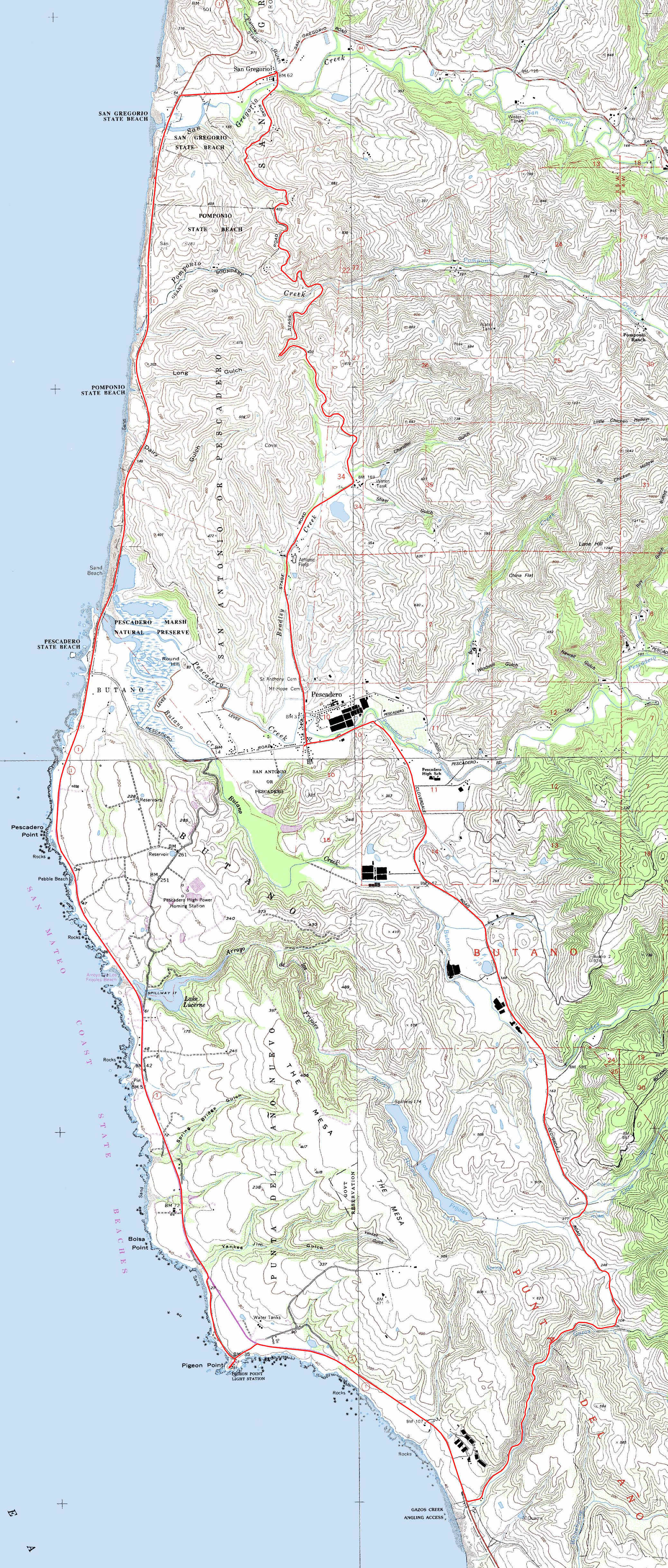 Pescadero - San Gregorio Loop (Alternate route) 100% ROAD ![]() This is an easier alternate version of the loop, which bypasses the last mile of Stage Road north of San Gregorio and the inland diversion from Highway 1 along Bean Hollow Road. See the longer version for a detailed description of the ride. © Ergin Guney