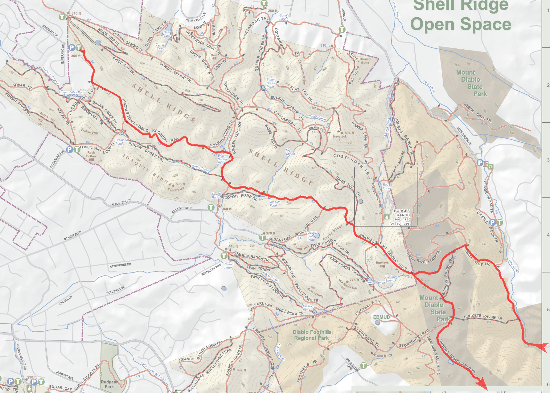GPS Track Park Maps: Highlighted: Shell Ridge Mount Diablo Original: Shell Ridge (PDF) Mount Diablo (PDF) Topographic Map Photos |